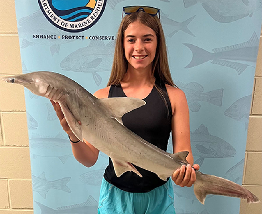 Riley Armes, 13, with her Bonnethead.